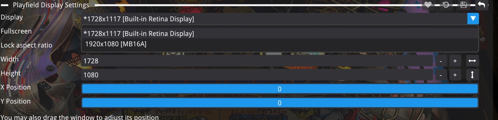 ![]() Playfield Display Settings |