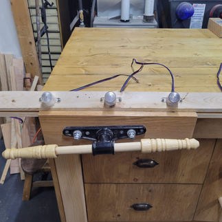 Get a piece of wood or metal fitting the width of your cabinet. space out and mark where your lights are going to be. Drill a small hole in the middle to fish the wires.